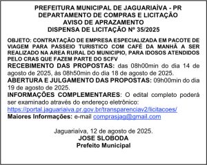 Aviso de Aprazamento Dispensa de Licitação N° 35/2025
