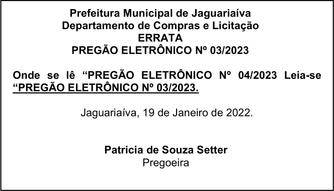 Aviso de Errata Pregão Eletrônico Nº 03/2023