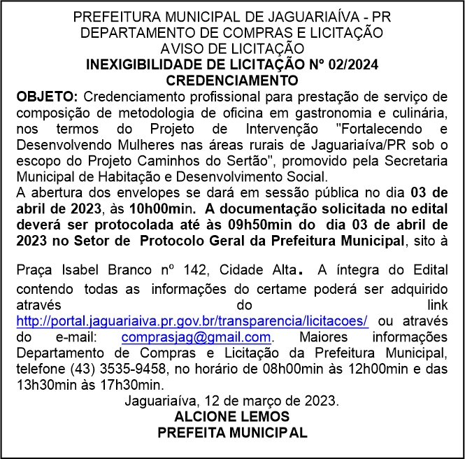 Aviso de Inexigibilidade de Licitação Nº 02/2024 – Credenciamento