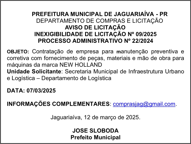 Aviso de Inexigibilidade de Licitação Nº 09/2025