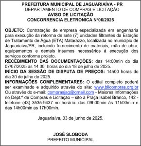 Aviso de Licitação Concorrência Eletrônica N° 06/2025