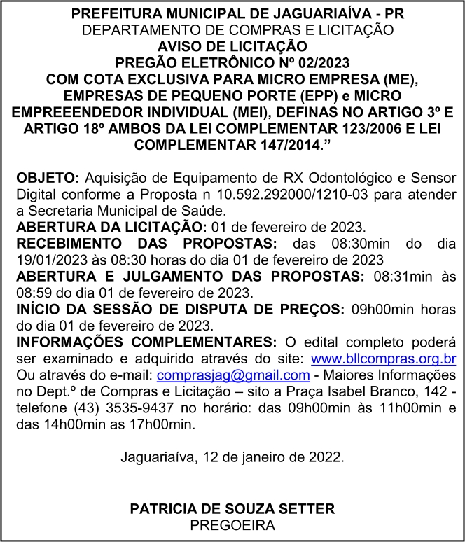 Aviso de Licitação Pregão Eletrônico Nº 02/2023