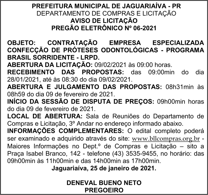 Aviso de Licitação Pregão Eletrônico Nº 06/2021