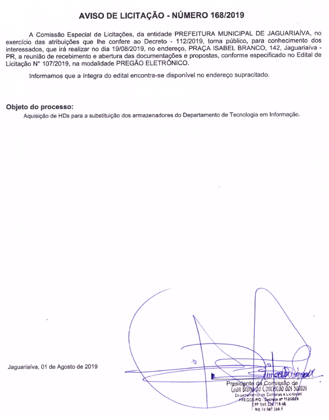 Aviso de Licitação Pregão Eletrônico Nº 107/2019