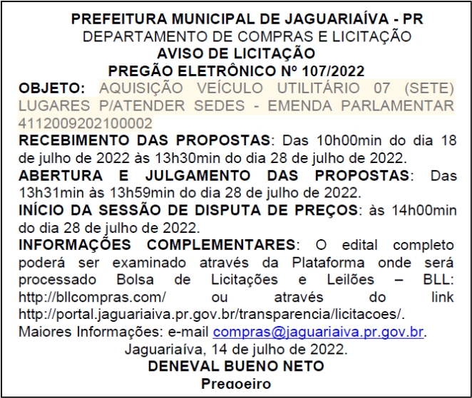 Aviso de Licitação Pregão Eletrônico Nº 107/2022