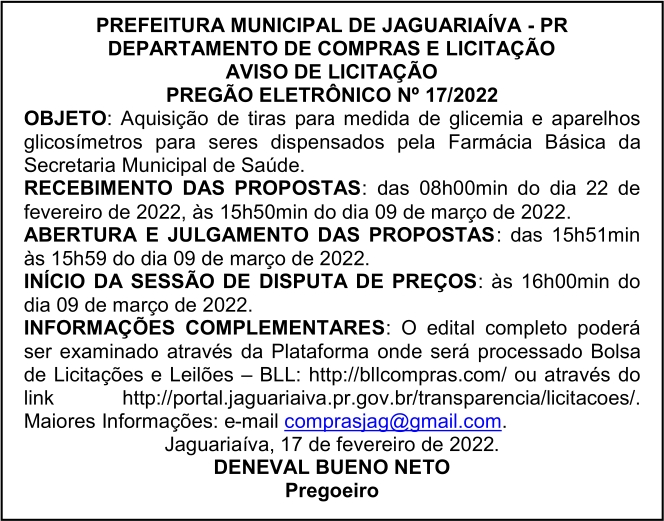 Aviso de Licitação Pregão Eletrônico Nº 17/2022