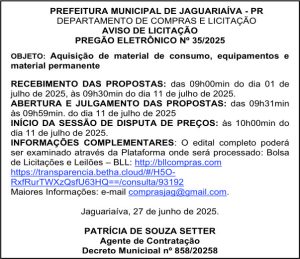 Aviso de Licitação Pregão Eletrônico Nº 35/2025