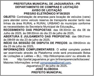 Aviso de Licitação Pregão Eletrônico Nº 38/2025