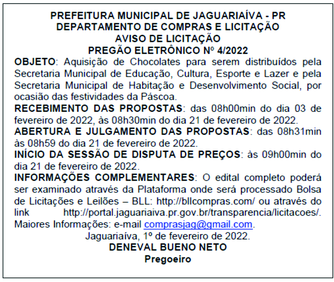 Aviso de Licitação Pregão Eletrônico Nº 4/2022