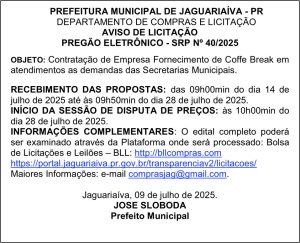 Aviso de Licitação Pregão Eletrônico Nº 40/2025
