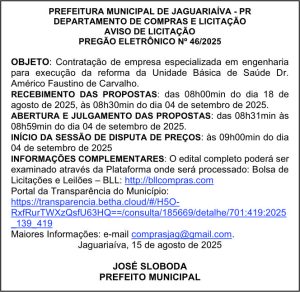 Aviso de Licitação Pregão Eletrônico Nº 46/2025