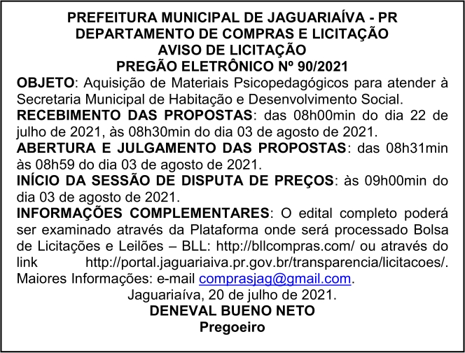 Aviso de Licitação Pregão Eletrônico Nº 90/2021