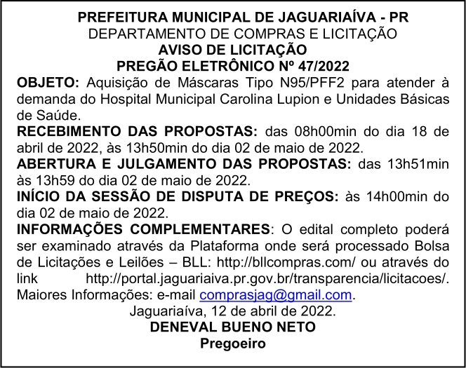 Aviso de Licitação Pregão Presencial Nº 47/2022