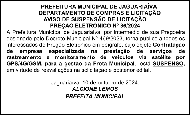 Aviso de Reabertura de Licitação Leilão Eletrônico Nº 02/2024