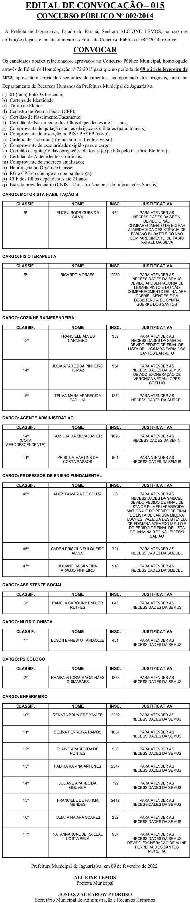 Edital de Convocação 015 – Concurso Público 002/2014