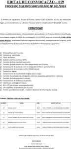 Edital de Convocação 019 – Processo Seletivo Simplificado 001/2024