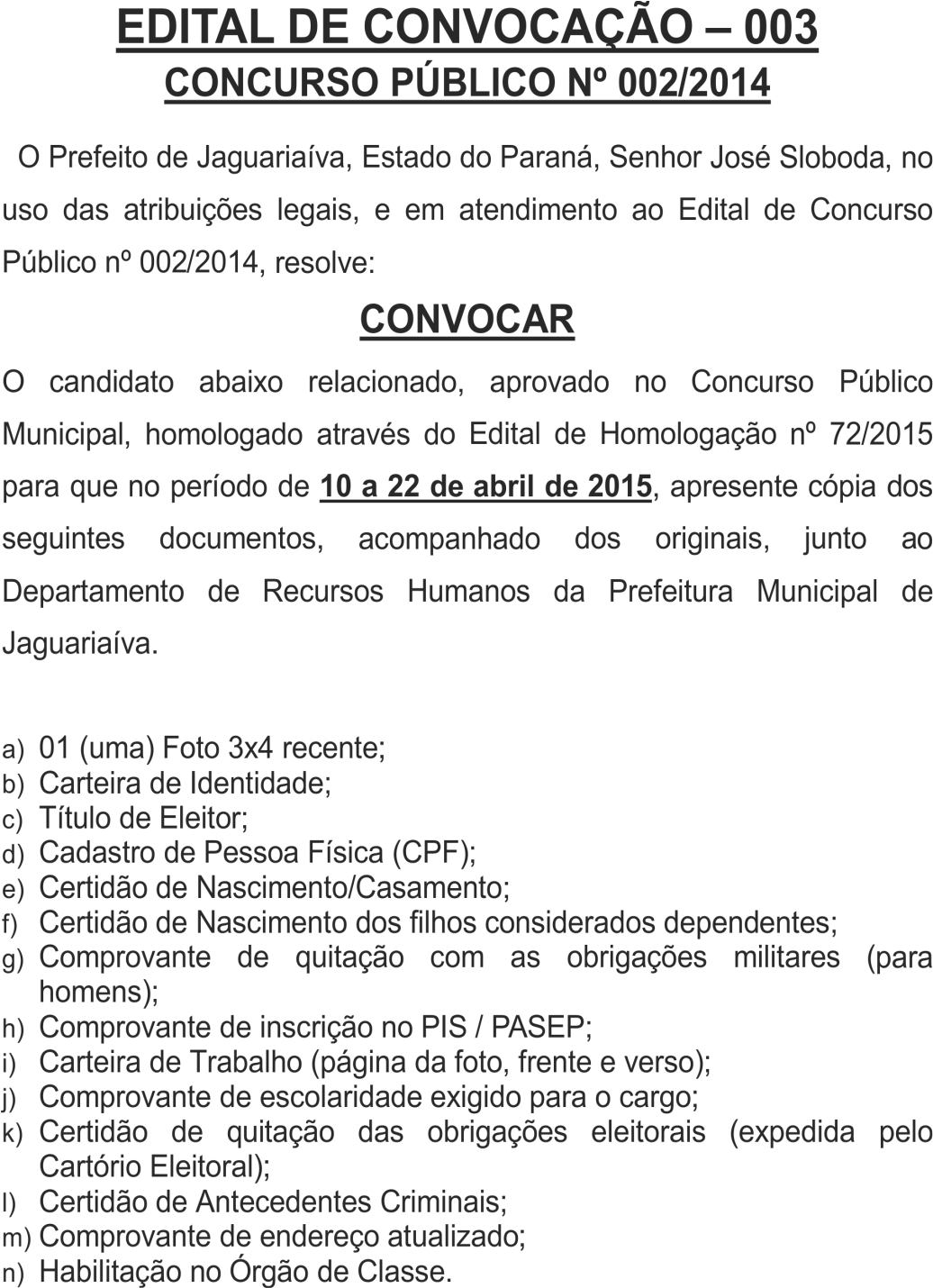 Edital de Convocação 03 – Concurso Público 002/2014 – Página 1