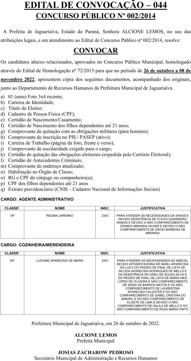 Edital de Convocação 044 – Concurso Público 002/2014