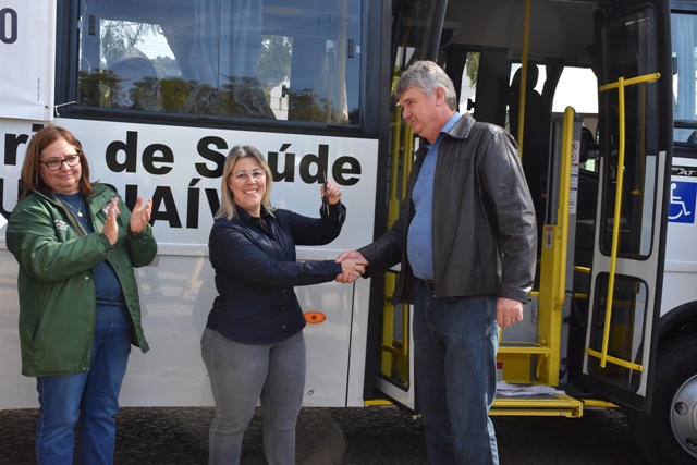 Secretária Amália Alves recebeu a chave do veículo, entregue pelo prefeito José Sloboda.