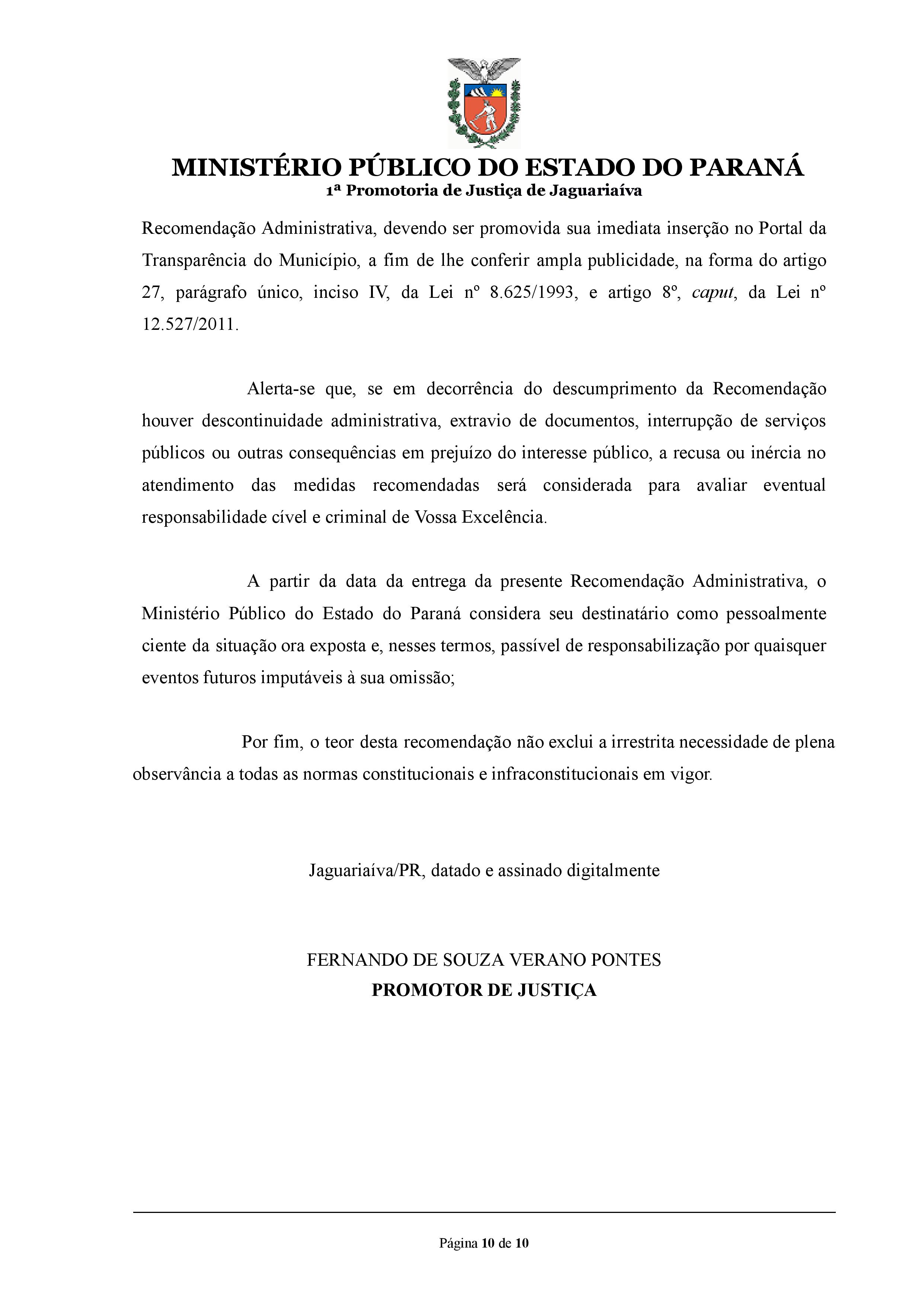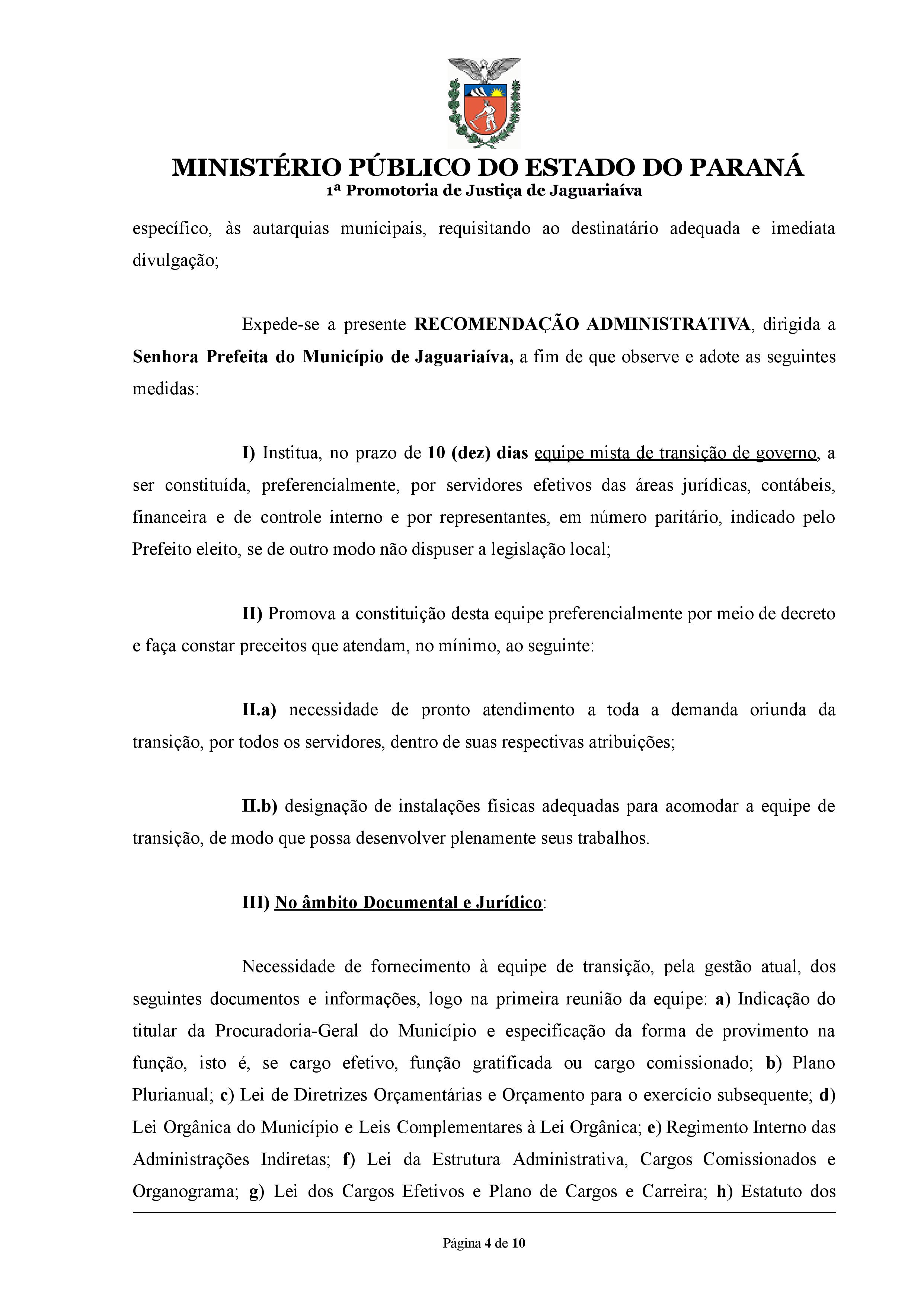 RECOMENDAÇÃO ADMINISTRATIVA
